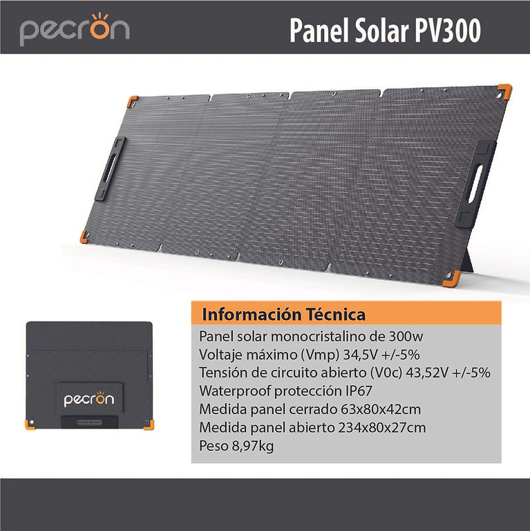 Generador Solar Pecron E1500 LFP con panel solar PV300 transportable.