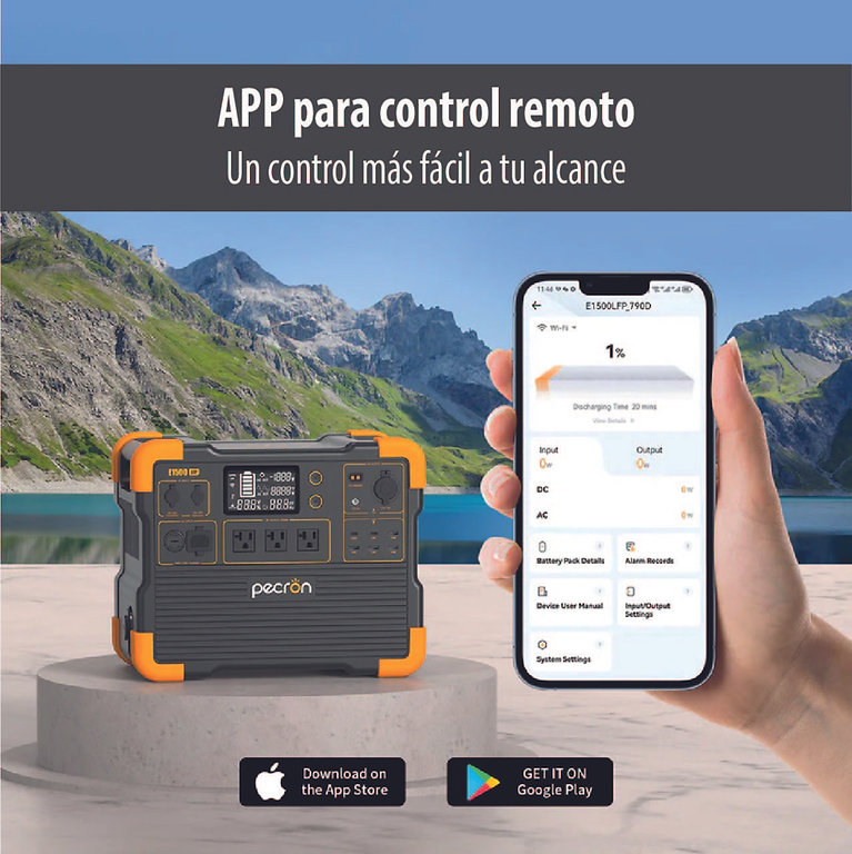 Un equipo que puedes llevar a tus salidas de aventura o sesiones de trabajo en terreno pudiendo cargar con la energía solar su batería y mantenerte más tiempo energizado. Con dos paneles solares aumentas al doble la capacidad de carga del generador, logrando mayor autonomía y velocidad de carga. El generador con inversor hibrido de 2200w de potencia nominal y batería de litio integrada de 1.536wh, puedes energizar artefactos que no superen los 2200w de consumo nominal. Su inversor hibrido permite cargarlo desde el panel incluido o desde la red eléctrica, generador a combustión o desde el auto. Llevalo a tus aventuras o trabajo sin dificultad gracias al tamaño de 38x24x31cm y sus 18kg de peso.