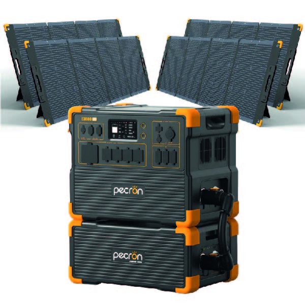 Un equipo potenciado con expansión de batería llegando 6.144wh de respaldo y cuatro paneles solares teniendo una alta capacidad y velocidad de carga del su Pecron, logrando mayor autonomia. El generador tiene un inversor hibrido de 3600w de potencia nominal y batería de litio integrada de 3.072wh, a la que se le agrega una unidad de batería de expansión EP3000 de 48V, llegando a los 6.144wh total.